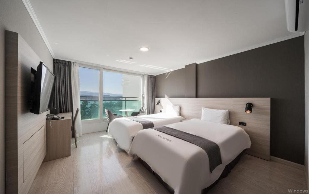 호수전망 뷰의 방은 바다 뷰의 방에 비해 비교적 저렴한 편이어서, 호수전망뷰로 예약하시면 바다전망 뷰에 비해 5만 원가량 저렴하게 예약하실 수 있습니다. 바다뷰의 방도 비성수기 기준 18만 원대로 근처의 호텔에 비해서는 저렴한 편입니다.